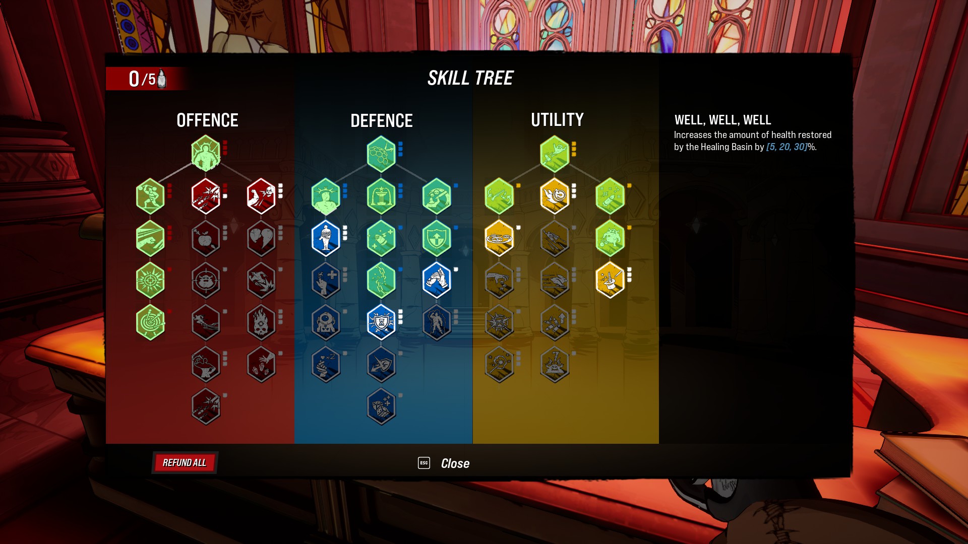 Kuoleminen tietää paluuta kirkkoon, jossa kerätään uutta mielenvoimaa seuraavaan runiin. Onneksi kirkossa voidaan aina melkeinpä jokaisen vähänkin pidemmän runin jälkeen käydä toimistovirkailijan pakeilla päivittämässä taitopuusta peruskykyjä. Nämä kirkossa hankittavat päivitykset ovat pysyvää sorttia ja esimerkiksi puolustuksen ja hyökkäyksen parantaminen edesauttaa jokaisen runin menestystä. Ne pysyvät tallentuneena kunhan ei siis aloita uutta peliä toisella hahmolla, koska tallennuspaikkoja on vain yksi. Taitopuun tallentuminen on ehdottomasti seikka, joka pitää mielenkiintoa yllä ja houkuttelee kokeilemaan kerta toisensa jälkeen uudelleen, koska lähes jokaisen runin jälkeen se seuraava yritys on jälleen ainakin pari astetta menestyksekkäämpi.