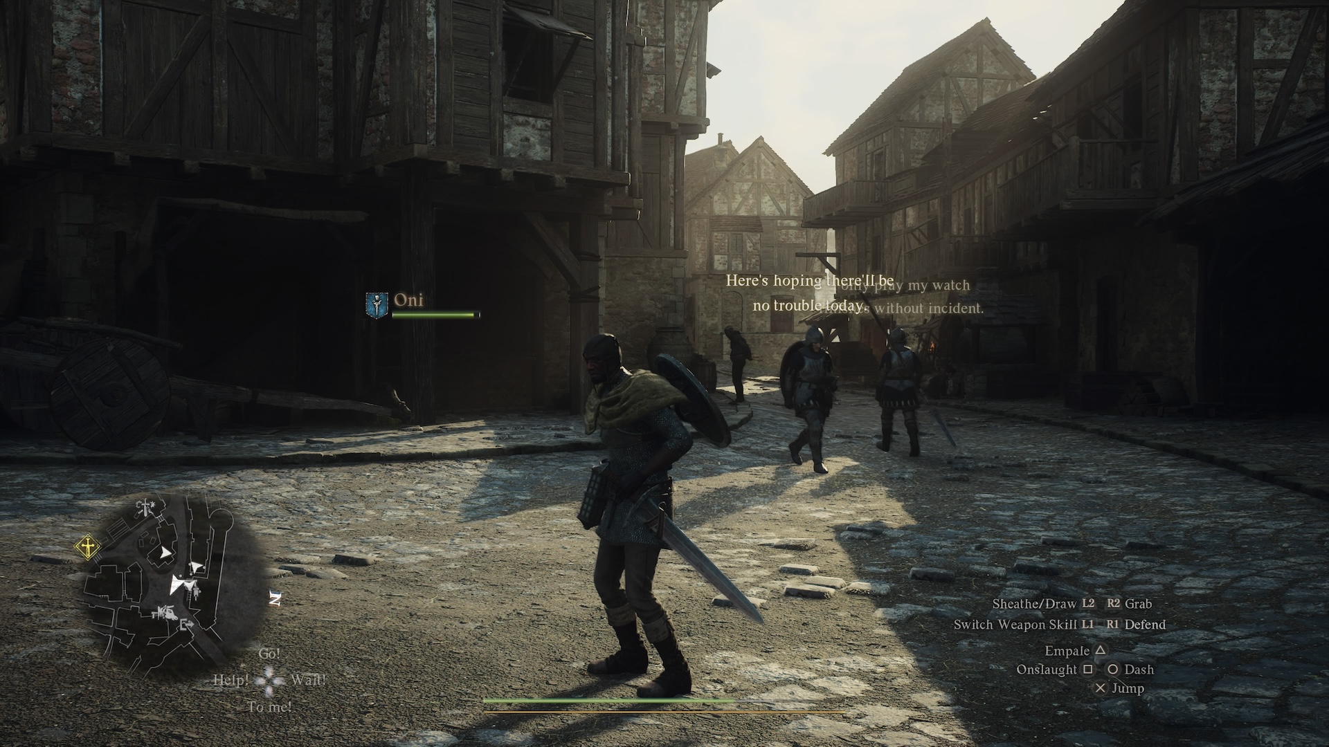 Dragon’s Dogman 2:n tinkimätön visio ja vanhakantaisuus tuntuvat useimmiten tarkoitukselliselta, mutta pesuveden mukana on lentänyt myös hyviä käytäntöjä. Itseäni häiritsi melkoisesti, ettei taisteluissa voi lukita lyöntejään tiettyyn viholliseen, enkä saanu selville, onko maksimiterveyden hupeneminen tallennusta ladattaessa ominaisuus vaiko bugi. Rasittavaa se joka tapauksessa oli. Myöskin tehtävät ja niihin liittyvät mekanismit ovat usein epäselviä: puuttuvista karttamerkeistä selvisin yleensä kunnialla, mutta kukapa olisi uskonut, että myrkyttäjänunnan kiinniotto tarkoittaa kirjaimellisesti tämän nostamista ilmaan, tai että “hiiviskely” vaatii itse asiassa pukeutumista tiettyyn valeasuun. Tiukkojen painorajoitusten vuoksi seikkailuun sisältyy myös melkoisesti inventaarion hallintaa sekä reppujen siivoamista kuivahtaneista yrteistä, mädäntyneistä ruokatarpeista ynnä muusta tauhkasta. Henkilökohtaisesti en pistänyt valikoivaa realismia pahakseni, mutta jäin kieltämättä kaipaamaan tehokkaampaa tavaranhallintakäyttöliittymää. Myöskin alle 30 kuvan sekuntivauhdin kyykkäävä ruudunpäivitysnopeus ja tyhjyydestä materialisoituvat kaupunkilaiset kaipaisivat korjaamista. Niin upea kuin Capcomin RE Engine onkin, lienee turvallista olettaa, ettei sitä ole suunniteltu aivan tämän kaliiperin avoimeen maailmaan.