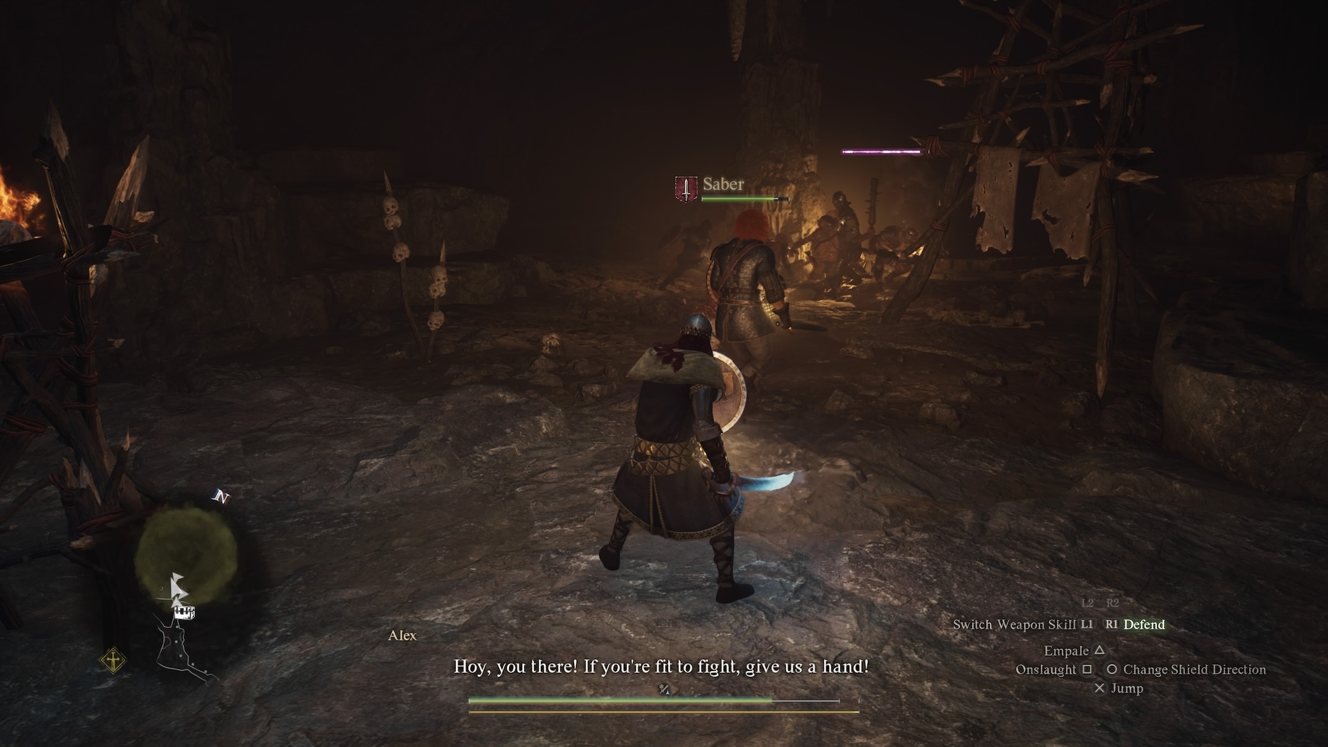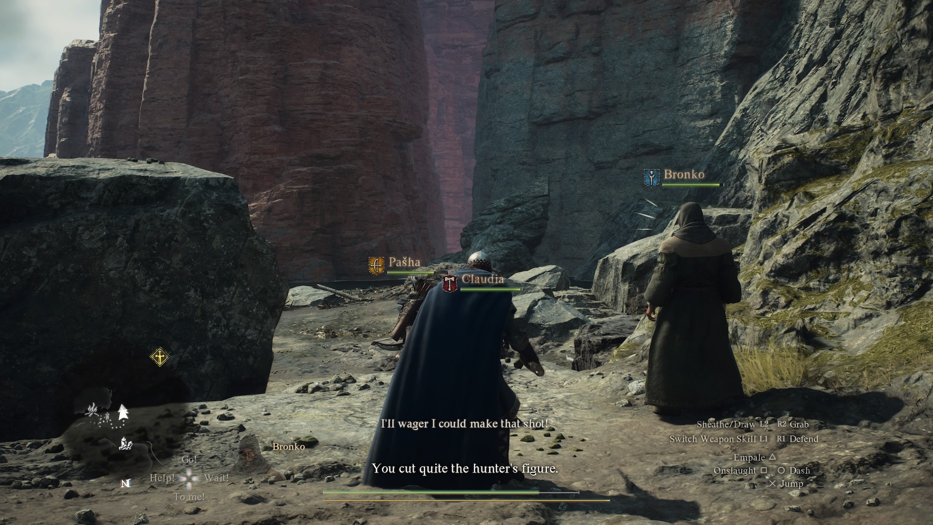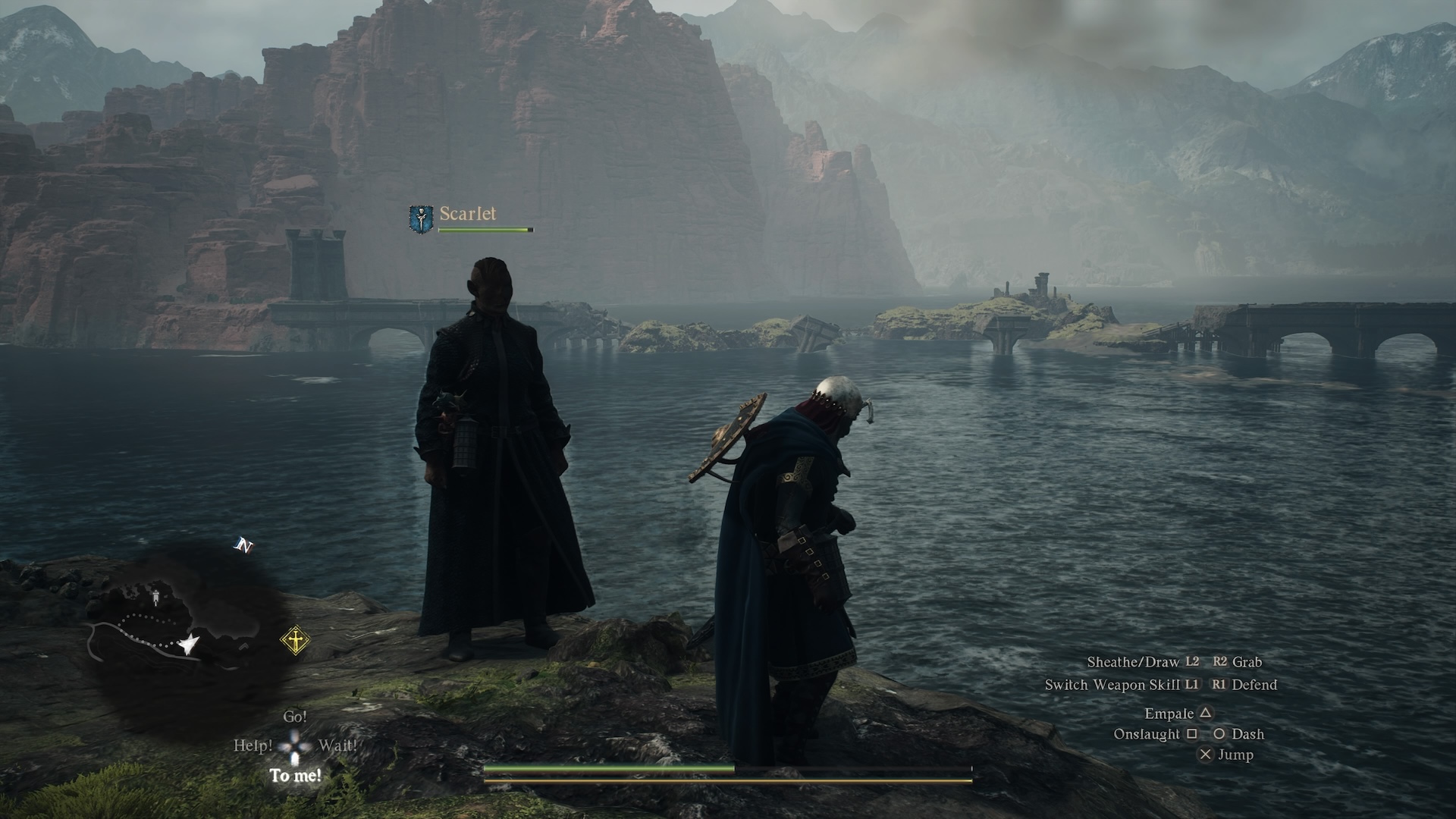 Dragon’s Dogma 2:n tarina käynnistyy tutulla kliseellä: pelaaja on muistinsa menettänyt vanki, joka ottaa hatkat orjakaivoksesta heti kun tutoriaali sen sallii. Pian käy selväksi, ettei pelaaja olekaan satunnainen pikkurikollinen, vaan lohikäärmeen valitsema “ylösnoussut”, jonka oikea paikka olisi tyrmän sijaan Vermundin valtaistuimella. Tästä alkaa monivaiheinen kamppailu vallanhimoisen virkamiehen ja nukkehallitsijan syrjäyttämiseksi, joka on oikeastaan pelkkä passeli tekosyy juoksuttaa pelaajaa ympäri upeaa fantasiamaailmaa. Vaikkei tarinasta passaa puhua samassa seurassa The Witcher 3:n ja Baldur’s Gate 3:n kaltaisen mammuttien kanssa, on Dragon’s Dogma 2:n kerronnassa myös jotain poikkeuksellisen onnistunutta: erityisen paljon ilahduttivat etenkin Shakespearesta ammentava kieli sekä taitavat ääninäyttelijät.