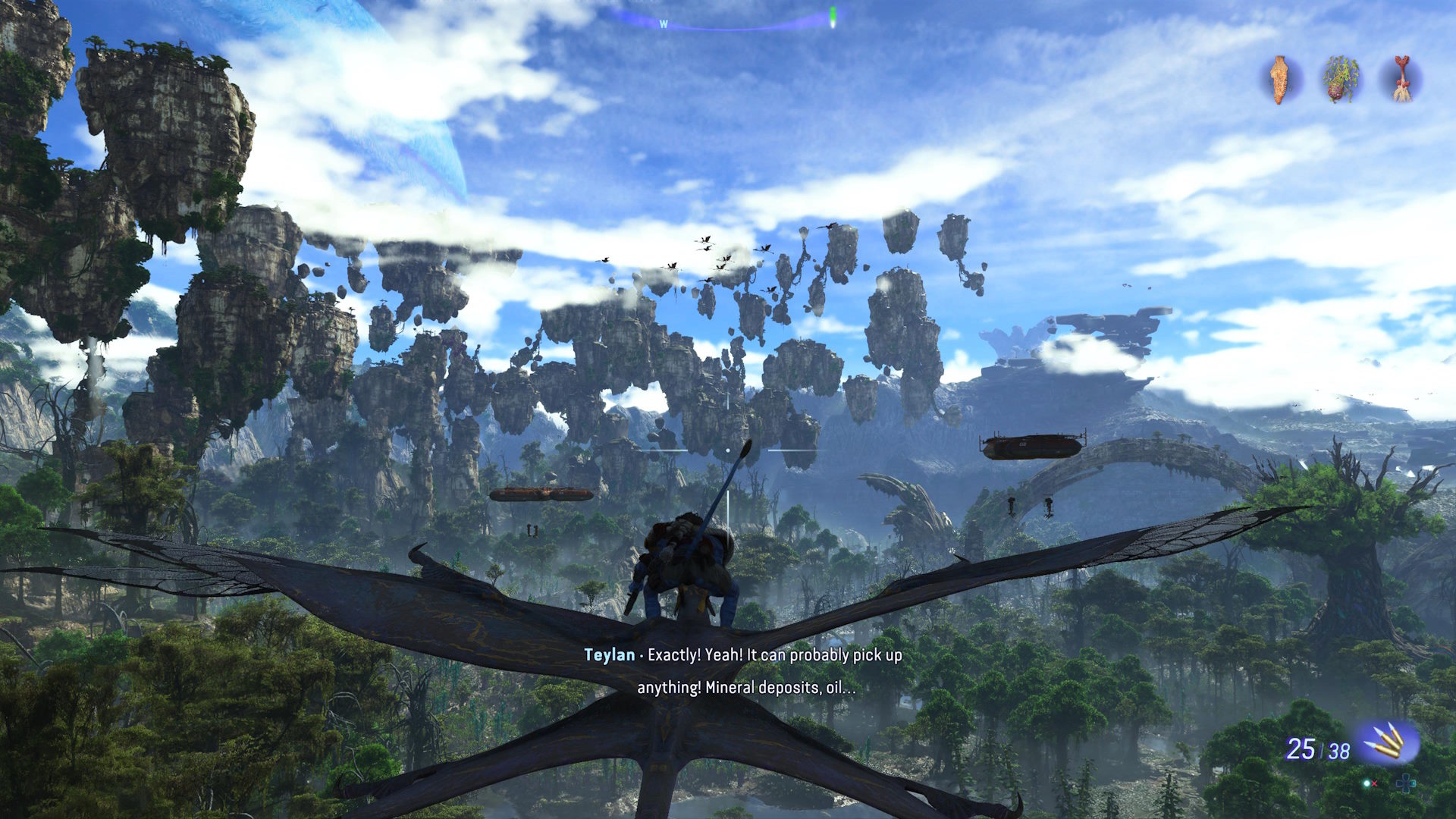 Hyvä niin, sillä vaikka en ole jaksanut Far Cry -sarjasta kovin suuresti innostua Far Cry 3 -pelin jälkeen, on Avatar: Frontiers of Pandora maailmanrakentamisensa osalta sekä jo elokuvan myötä mukana tulevan fantasiaelementtinsä ansiosta riittävän erilainen, jotta sitä ei miellä liikaa Far Cry -peliksi uudella skinillä. Ubisoftin vahvuus kun on rakentaa isoja ja upeita maailmoja (ei välttämättä aina mielenkiintoista tekemistä tai onnistunutta tekoälyä) eikä uusi Avatar-peli ole siinä mielessä mikään suuri poikkeus.