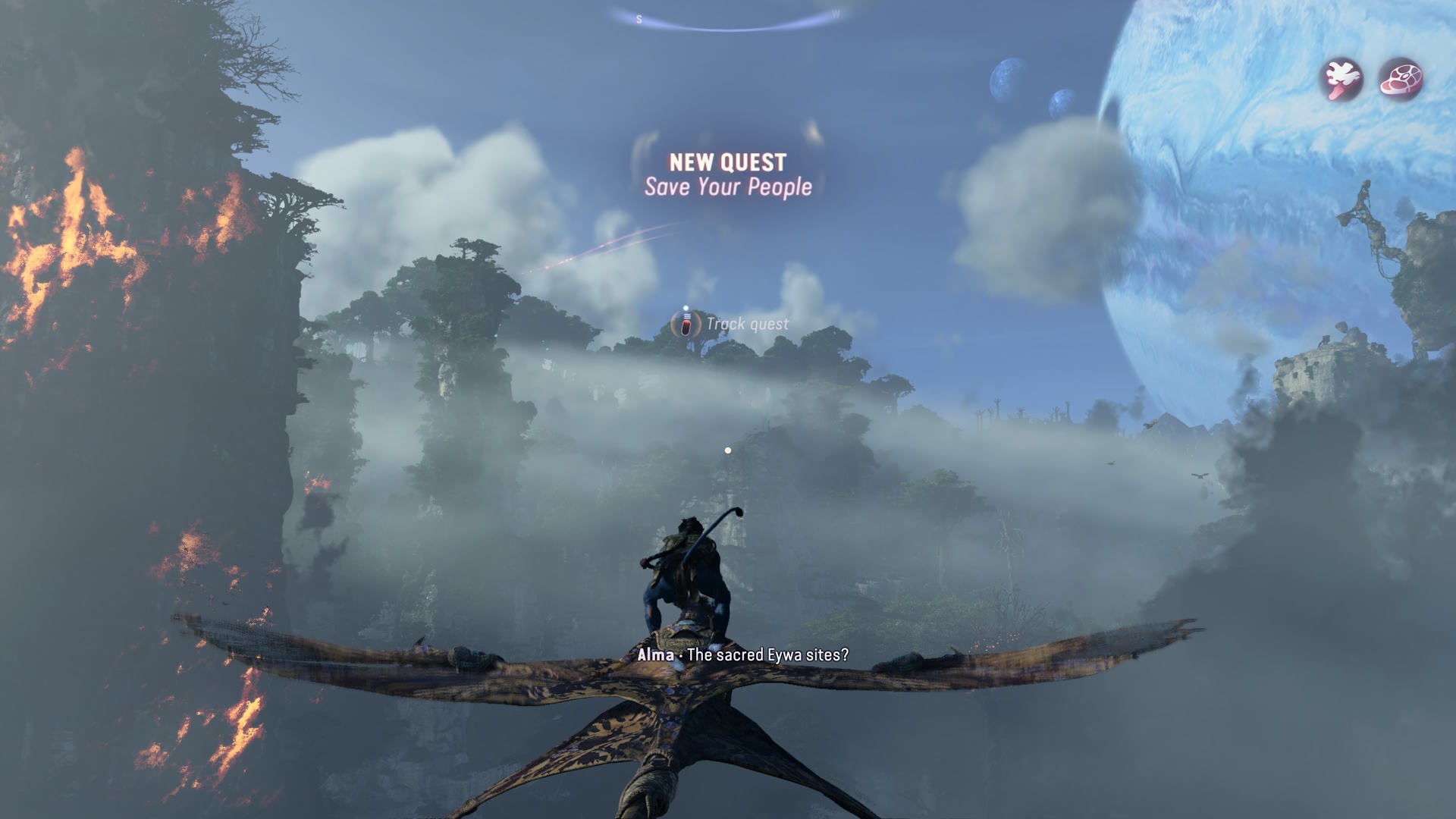 Frontiers of Pandoran tavoin From the Ashes -lisärin suurimpia onnistumisia nimittäin on edelleen sen valloittavan kaunis, isokokoinen maailma omaperäisine Na’Vi -hahmoineen, josta kunnia toisaalta toki kuuluu pitkälti alkuperäiselokuvan suunnittelutiimille, mutta jonka Massive apureineen on onnistunut visuaalisesti kuin rikkaan oloisen äänimaailmansakin osalta vangitsemaan Ubisoftin toimivalla snowdrop-moottorilla. Sinikansan asuttamassa satumaisessa, ilmassa leijuvia vuoria, tuulessa huojuvia puita ja yöllistä valoloistoa tarjoavassa fantasiamaailmassa viihtyy kivasti vaikkei mitään sen kummempaa tekisikään. Nyt uutena juttuna mukana on roihuavia ja karrelle palaneita alueita, sekä savunsekaisia paikkoja, joissa esimerkiksi ikran-lentoliskot eivät viihdy eivätkä halua laskeutua. Lentoliskolla (So’Lekin lisko on I’Ley) lenteleminen on edelleen hauskaa, jopa silloin, kun ei jahtaa mitään aktiivista tehtävätavoitetta.