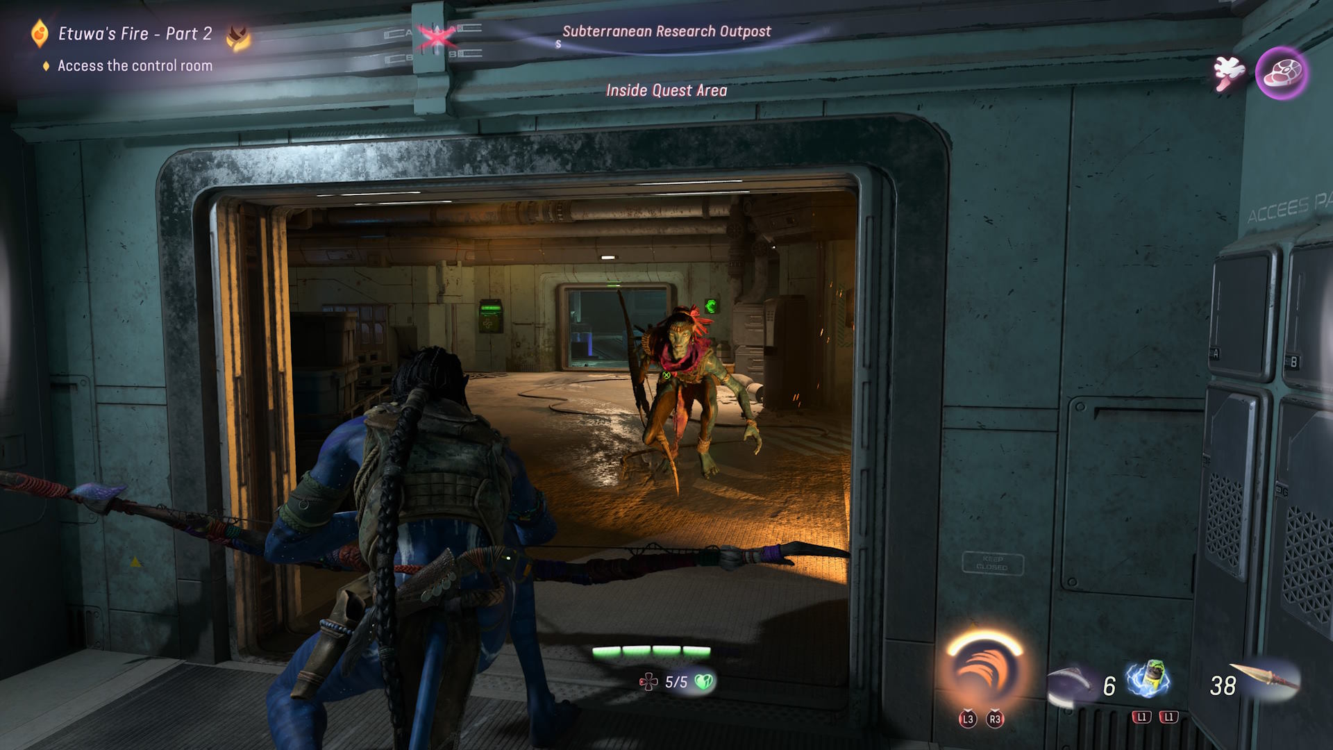 Toisinaan kompleksit menevät maan ja viellä merenpinnankin alapuolelle. Sieltä sitten etsitään jotakuta sinistä frendiä, joka ei välttämättä ehkä edes ole siellä. No saadaanpa tilaisuus putsata sisätilat RDA:n joukoista ja samalla sabotoidaan noin tusinan verran laitteiden ja ovien käyttöpaneeleita tai muuta oleellista. RDA:lle alihankkijana paneeleita valmistava yritys varmasti salaa kiittää Na’veja siitä, että töitä riittää… Lopuksi pitää sitten vielä erikseen paeta koluamalla samat reitit ylöspäin kohti vapauteen. Toki toiminnasta ja tekemisestä palkitaan ennen pitkää tuntolaatoilla, jotka muuntuvat taitopisteiksi. Emopelin tapaan taitopuun oksilta voidaan napsia uusia skillejä So’Lekin avuksi. Osa tekevät ikran-liskosta paremman, osa auttaa hiippailussa tai vaikkapa tulivahingon sietokyvyssä.