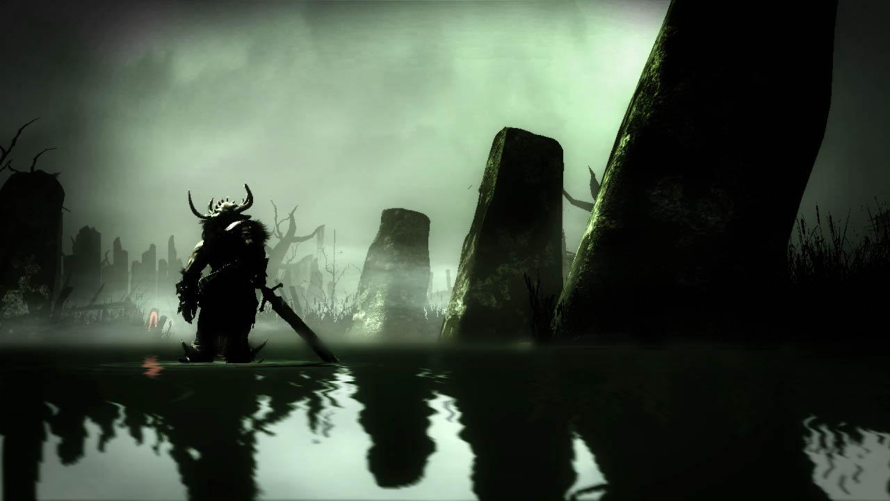 Bloodforgen kelttiläisvaikutteisen maailman keskipisteenä on Crom – verenvuodatukseen kyllästynyt soturi, joka on pistänyt elämänsä uusiksi vaihtamalla taistelutantereet perhe-elämän arkeen. Auvoa kestää noin pari minuuttia, kunnes päähenkilön potentiaalia kavahtavat jumalat tekevät ilkeän tempun ja harhauttavat Cromin murhaamaan vaimonsa. Arjen raunioista käynnistyy verinen kostoretki, jossa ei säästellä sen koomin verta kuin pelaajan hermojakaan. Bloodforgen tarina on yhdentekevä, eikä se ansaitse tulla käydyksi läpi tämän tarkemmin. Crom on vaikeasti samaistuttava örisijä, joka on puhkuu raivoa kuin B-luokan Kratos. Jumalat ovat ketjupolttajilta kuulostavia tusinapahiksia, joiden motiivit liittyvät järjestäen muinaisiin ennustuksiin tai muihin älyllisesti laiskoihin oikopolkuihin. Kaikki pukeutuvat pelottaviin naamareihin ja uhoavat. Meno on synkkää ja ankeaa.