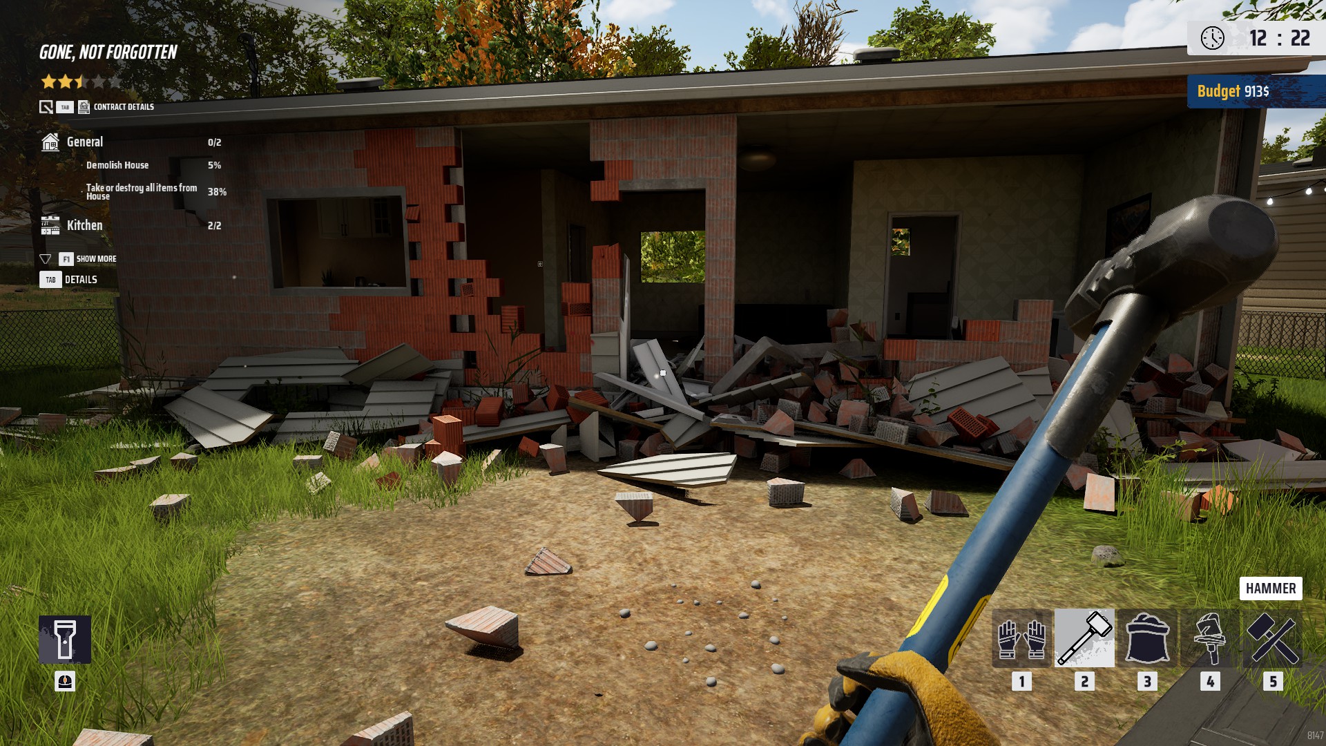 Toisessa esimerkissä perhe X on muuttamassa uuteen asuntoon. Sen sijaan, että kämppä laitettaisiin myyntiin, haluavat omistajat että vain muutamat huonekalut pelastetaan ja pakataan mukaan omistajien pihalla odottavaan pakuun. Muu irtaimisto pitäisi tuhota tai vaihtoehtoisesti se voidaan lahjoittaa pelaajalle, mikäli vain jaksaa kantaa ja pakata kaiken työautoonsa. Itse asunto? No, se pitäisi tuhota kokonaan. Ei muuta kuin leka heilumaan! Ja jos pätäkkää on kertynyt jo tarpeeksi, voi vuokrata myös kuulamörssärin uhkumaan ja puhkumaan taloa matalaksi. Talon purkaminen kuulalla on erittäin näyttävää ja jonkinlaista fysiikkaakin pääsee näkemään, kun talon palaset lentelevät pitkin pihaa.