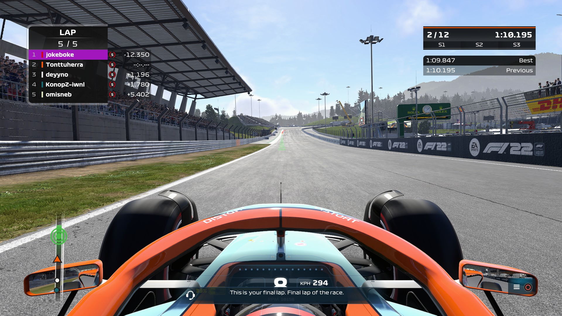 Kokonaisuutena F1 22 on jo nyt lunastanut paikkansa EA:n muiden urheilupelisarjojen parissa. Se ei tuo mukanaan oikeastaan mitään suurta uutta ja osa uudistuksistakin on täysin turhia. Peruspuitteiltaan homma toimii, ajotuntuma on hyvä, säädettävä tekoäly antaa haastetta yksinpelaamiseen ja ranked-nettipelissä saa vääntää tarkasti ja tosissaan. Erilaista pelattavaa löytyy pääasiassa viime vuoden version kaltaisesti, suurimpien rakenteellisten uudistuksien ollessa Miamin rata ja sprinttikisat.