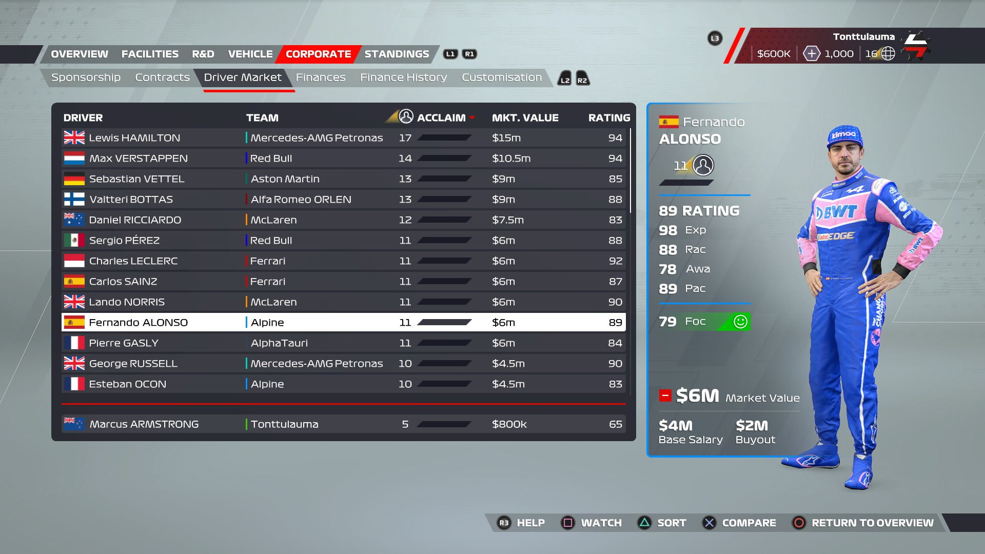Sisällön osalta on otettu mielestäni jälleen takapakkia. Kauden 2022 uudistuneiden autojen sekä uuden – muutamaa hölmöä mutkaa lukuun ottamatta – ihan kivan Miamin radan ohella mukana on F2-sarjan viime kauden kuviot kuskeineen ja autovärityksineen. Viime vuoden Breaking Point -nimeä kantanutta tarinamoodia ei nyt ole uusin kuvioin tarjolla, eikä niitä himputin klassikkoformuloitakaan ole tuotu takaisin.