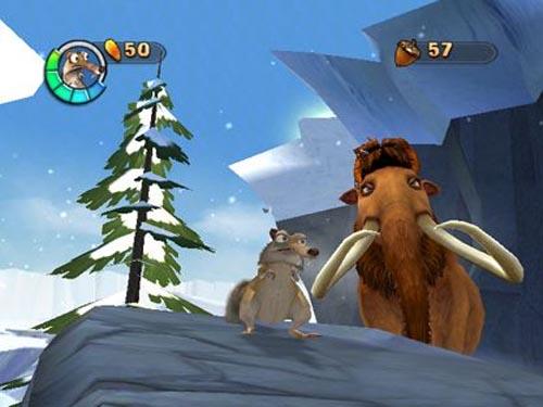 Tammenterhoja keräämällä aukeaa käyttöön bonusmateriaalina pelin valikoista löytyvien elokuvan ääninäyttelijöiden haastatteluita, kun taas pähkinöitä on aina kerättävä tietty määrä, jotta pääsisi etenemään seuraavaan tasoon. Tasoista puheen ollen, pelin tasosuunnittelu on varsin toimivaa ja Scratilla onkin hauska vipeltää luonnossa kiipeilemällä ja pomppimalla, sekä kohdata pelin hauskimpia kohtia, esimerkkinä kohta, jossa pelaajan täytyy vikkelästi hypellä pieneltä jäälautalta toiselle pähkinöiden keräämiseksi. Tasohyppelypelien yksin tärkeimmistä elementeistä ovat toki kontrollit sekä kameran käyttäytyminen ja onneksi Ice Age 2:ssa kummatkin näistä ovat hyvin onnistuneet. Pelikamera pysyy hyvin Scratin perässä ja hahmoa on helppo ohjata niin peliohjaimella kuin hiiri+näppäimistö yhdistelmälläkin. Itse suosin kyseisen pelin kohdalla enemmän tosin ensinnä mainittua, joskaan ei jälkimmäisessä vaihtoehdossakaan mitään vikaa ollut.