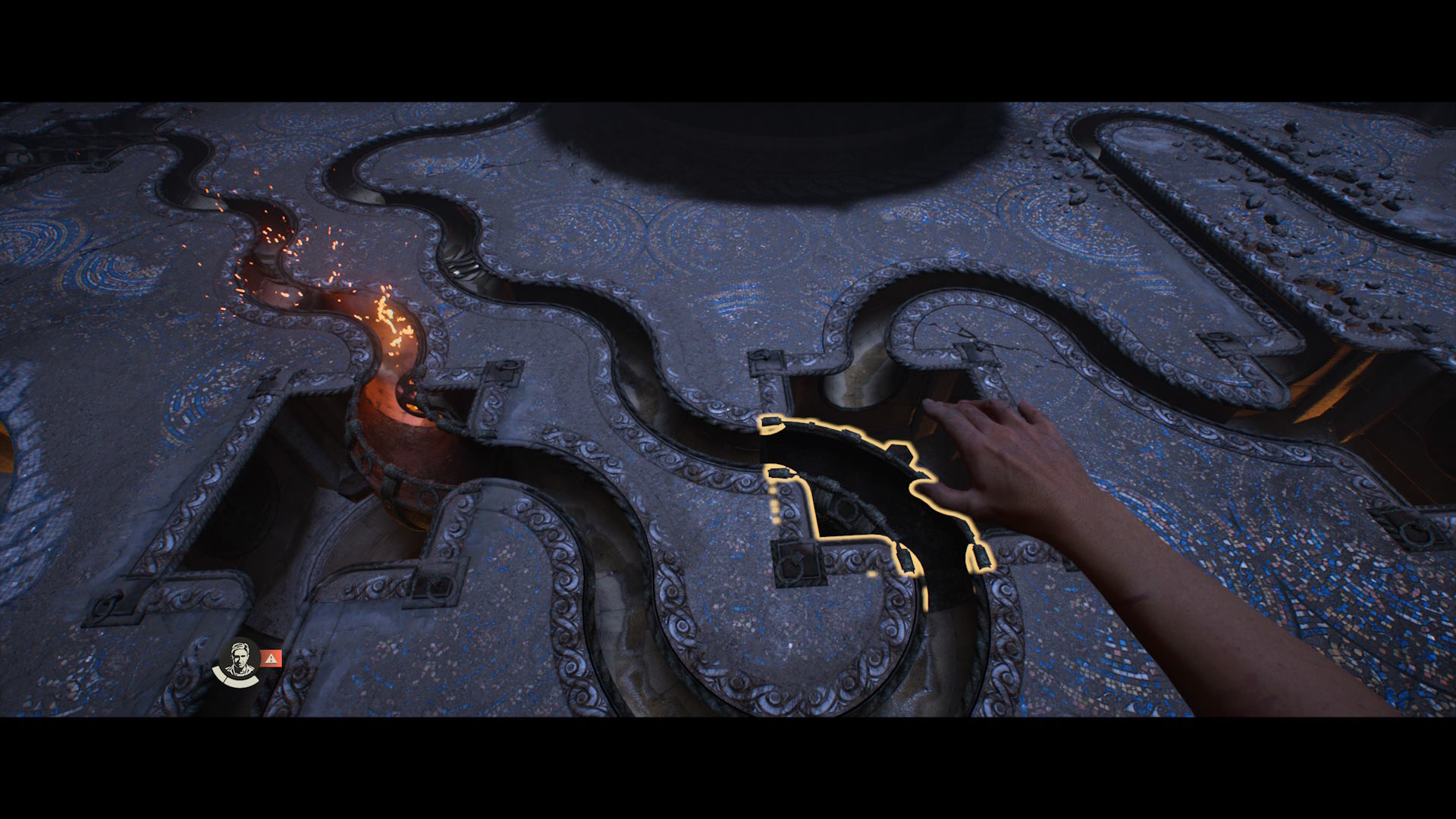 Puzzleja The Order of Giants tarjoaa alle kymmenen. Emopelin puzzlet suurelta osin olivat mielestäni hyvin suunniteltuja ja juuri sopivan haastavia, mutta läpipelattavia ilman netin apua. Lisäseikkailun aikana jouduin turhautuneena vilkaisemaan apua kolmeen. Ensimmäinen isompi on käytännössä helppo, kunhan jujun vain hoksaa – johdatellaan vettä sokkelossa kaikkiin kriittisiin kanaviin. Tätä seuraava, rautakuulan ohjaaminen sokkelossa neljän patsaan ohitse oikeassa järjestyksessä oli rasittava ja vieläpä buginenkin.