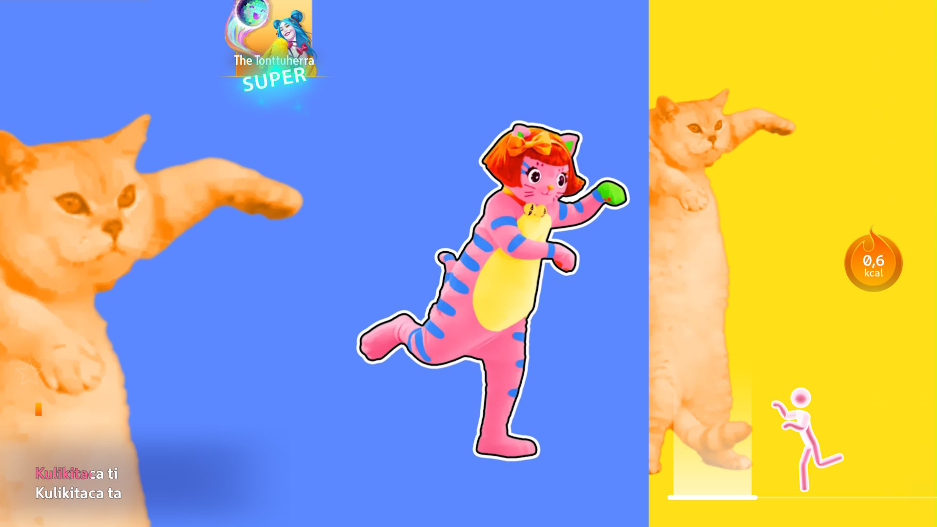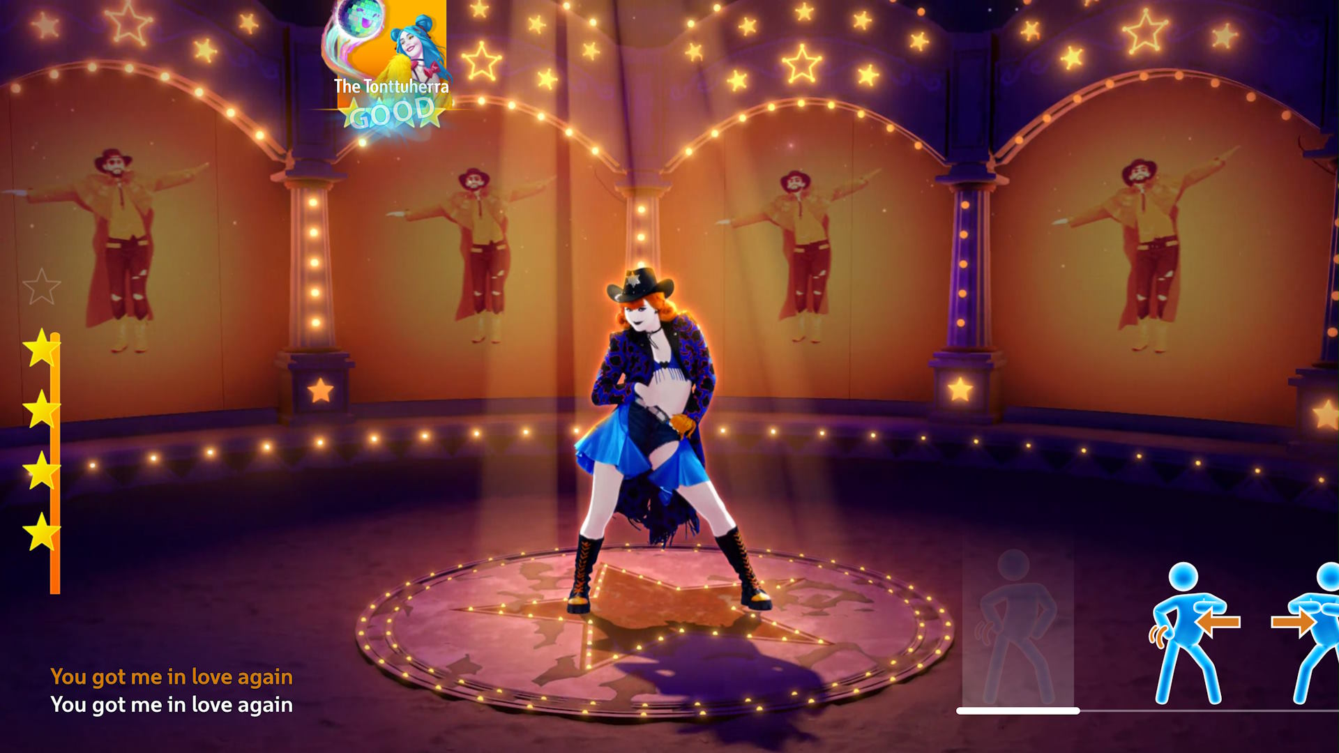 Tuttuun tapaan voi tanssia seuraamalla joko omaa ruudulla heiluvaa tanssivalmentajaa ja matkia sitä (tai yrittää parhaansa mukaan) tai sitten oikealta alakulmasta vasemmalle liikkuvia tanssikuvakkeita vahtaamalla. Näiden kahden välillä tuli vaihdeltua hieman biisistä riippuen – toisinaan koin saavani parempaa tulosta matkimalla itse tanssijaa, kuin kuvakkeita.