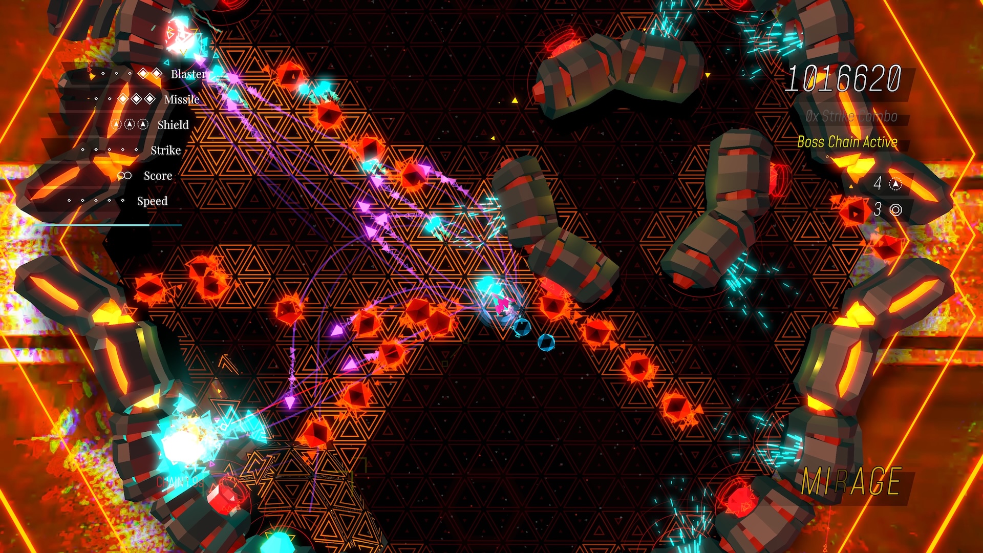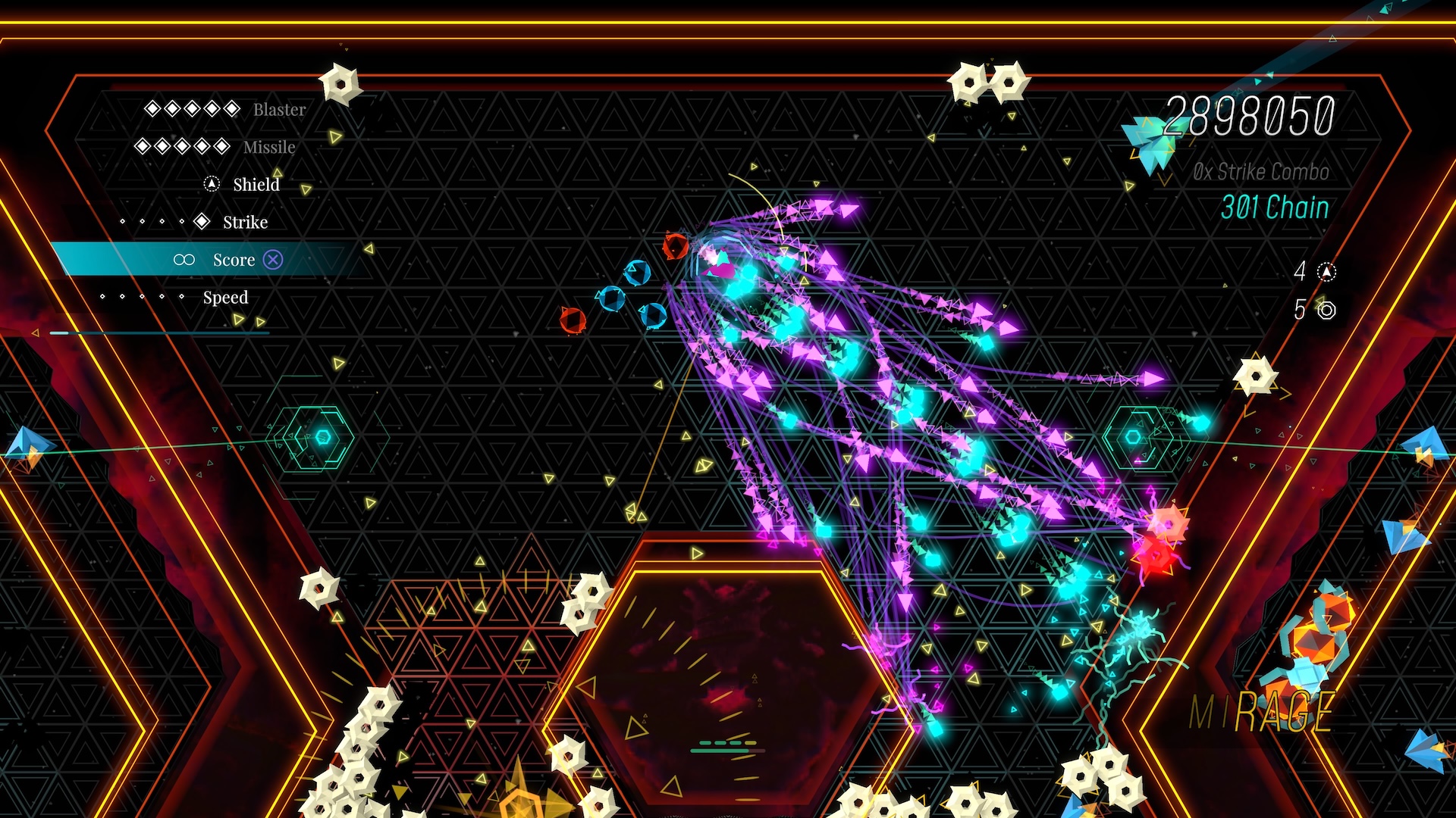 Sektorin teknobaletin todellinen nerokkuus piilee kuitenkin siinä, kuinka se piiskaa pelaajansa aggressiiviseen ja riskejä kaihtamattomaan rytmiin. Tuhotut viholliset jättävät jälkeensä kimalteita, joiden haaliminen synnyttää pistebonuksia sekä aluksen paranteluun käytettäviä valintapoletteja. Polettien ja bonusten keräystä säestää räjähdys ja väliaikainen sarjatuli, joka motivoi yhä ronskimpaan kimallejahtiin. Pelaaminen onkin parhaimmillaan aivan jatkuvaa ilotulitusta ja puskemista halki toinen toistaan tiiviimpi vihollislaumojen poletin kiilto silmissä. Mitä aggressiivisemmin pelaa, sitä paremmin peli yleensä menee. Vastustajien jaloista peruutteleville himmailijoille ei bonuksia jaella.