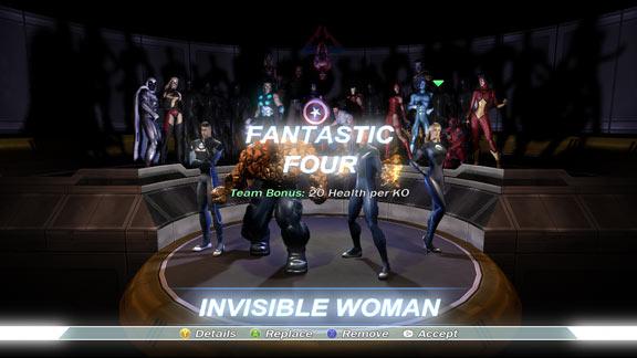 Pelin edetessä pelaajan taisteluun valitsemat supersankarit keräävät kokemuspisteitä ja nousevat taitotasoissa. Taitotasojen nousun myötä hahmoille kertyy käytettäviä pisteitä, joilla pelaaja voi parannella kunkin hahmon erinäisiä taistelutaitoja. Kivana bonuksena pelaaja voi pelin edetessä myös vaihtaa hahmojen asustuksia ja siten esimerkiksi Wolverinelle on mahdollista saada tämän “elokuvalookin” ohella myös aito sarjakuva-asukin.