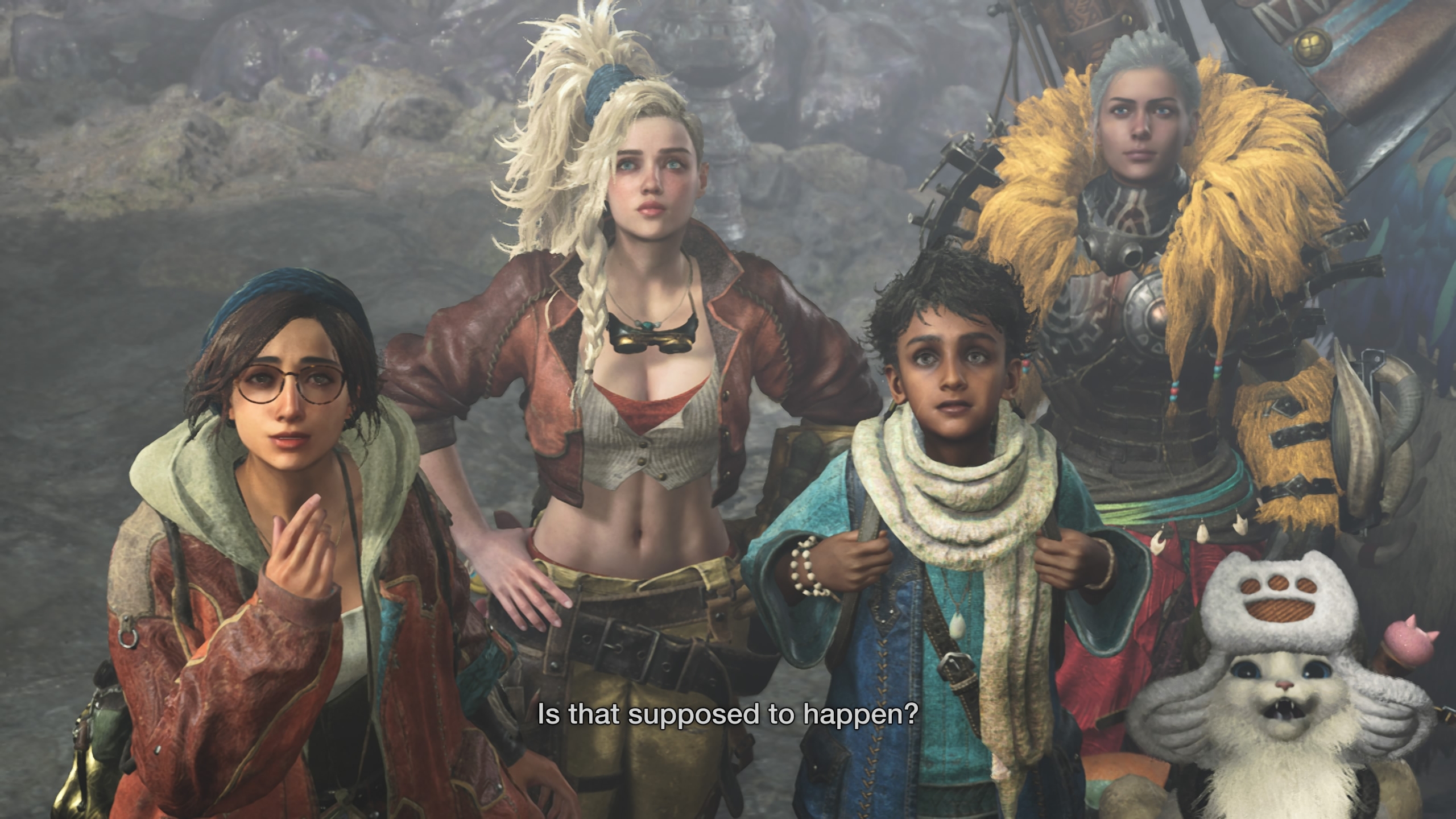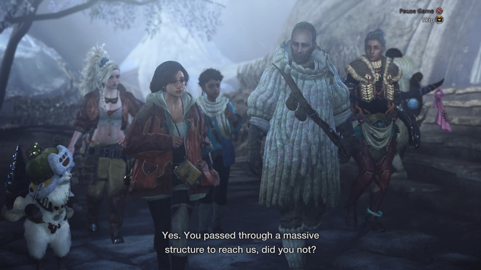 Suurin osa etenkin alkupään dialogista ja välipätkistä on useimmiten sen verran turhanoloisia, että niitä voi surutta ohittaakin, eikä missaa oikein mitään. Kyllä pelin hahmot silti ihan symppiksiä ovat ja niiden ääninäyttely kauttaaltaan toimivaa ja siksi ohuenkin tarinan etenemistä on kiva seurata. Seurueeseen kuuluu pelaajan metsästäjän ja Palico-kissan ohella ”kiltasihteeri” Alma, napapaidassa pääosan ajasta viihtyvä ase- ja varusteseppä Gemma sekä itse the keepers -kansan edustaja, Nata. Muitakin mukana roikkuvia hahmoja metsästyskiltaan kuuluu, mutta ne jäävät enemmän statisteiksi.