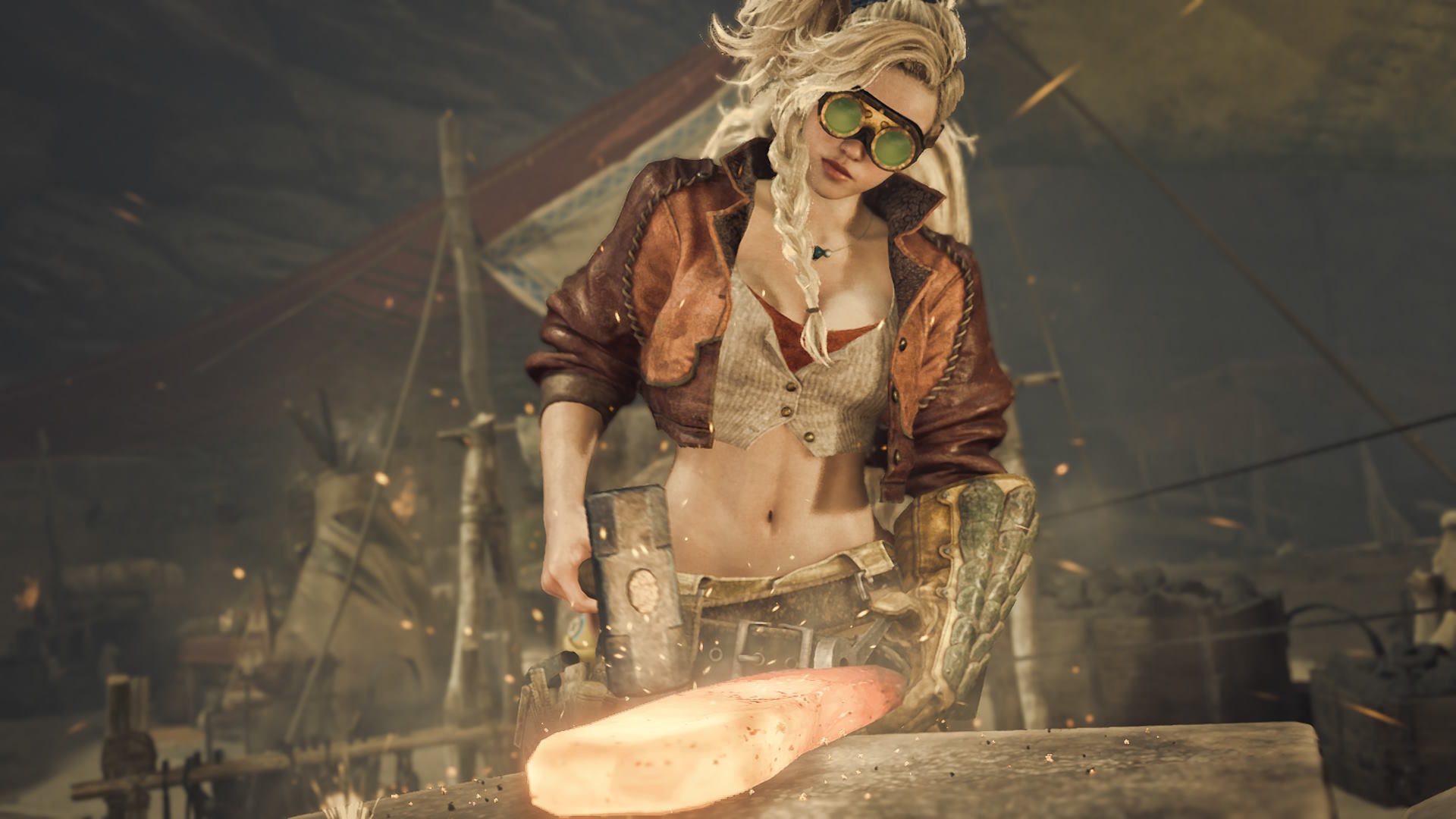Leirissä voidaan sitten parannella asusteita ja aseita tai valita pelin kahdeksastatoista aseesta toiset kaksi matkaan aiempien sijaan parempaa onnea toivoen. Pelin aseista valtaosa on lyömäaseita, kuten miekkaa, vasaraa tai jättimäistä soitinta, mutta varsijousi ja aseenkaltainenkin mahtuu joukkoon.