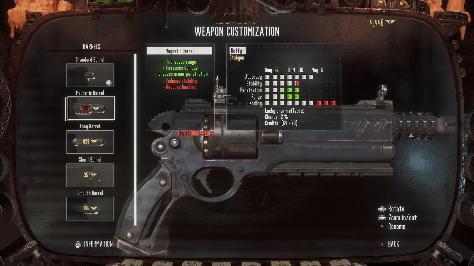 Erilaisia aseita kyllä on ja niitä voidaan päivitellä tehopalikoilla sekä erilaisilla taikakaluilla aluksi erittäin sekavanoloisissa valikoissa, jotka esimerkiksi nostavat pelaajan hp:tä tai tuottavat enemmän loottia laatikoista ja vihollisista, mutta siihen ne jäävätkin. Aseet ovat peruspyssyjä pistooleista tarkka-ampujan kivääreihin, mutta mikään ase ei erityisemmin nouse esiin eikä niissä ole tarvittavaa munaa. Pelaajan omia kykyjäkin voidaan päivitellä jaloista käsiin, mutta kaikki on niin kovin geneeristä sorttia.