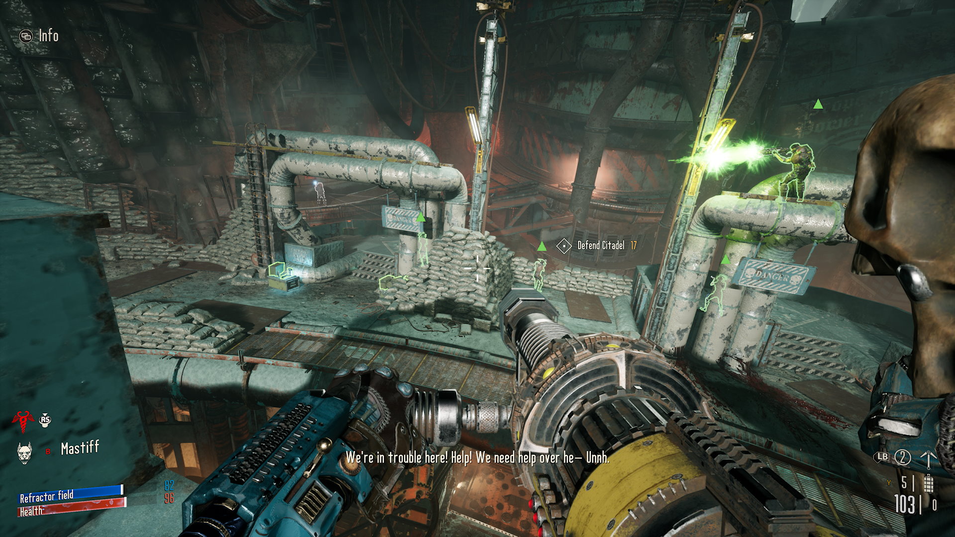 Mitä Necromundasta sitten jää käteen? XSX:llä pelin maailma ja vastaan tulevat uudenlaiset slummimaisemat näyttävät kerta toisensa jälkeen hienoilta ja mielikuvituksellisilta. Grafiikan nopeus on sulavaa ja räiskiminen toimivaa, vaikka pelin aseet eivät oikeastaan sen kummemmin vakuuta – seikka, jota ei ole muistettu Doomista apinoida.