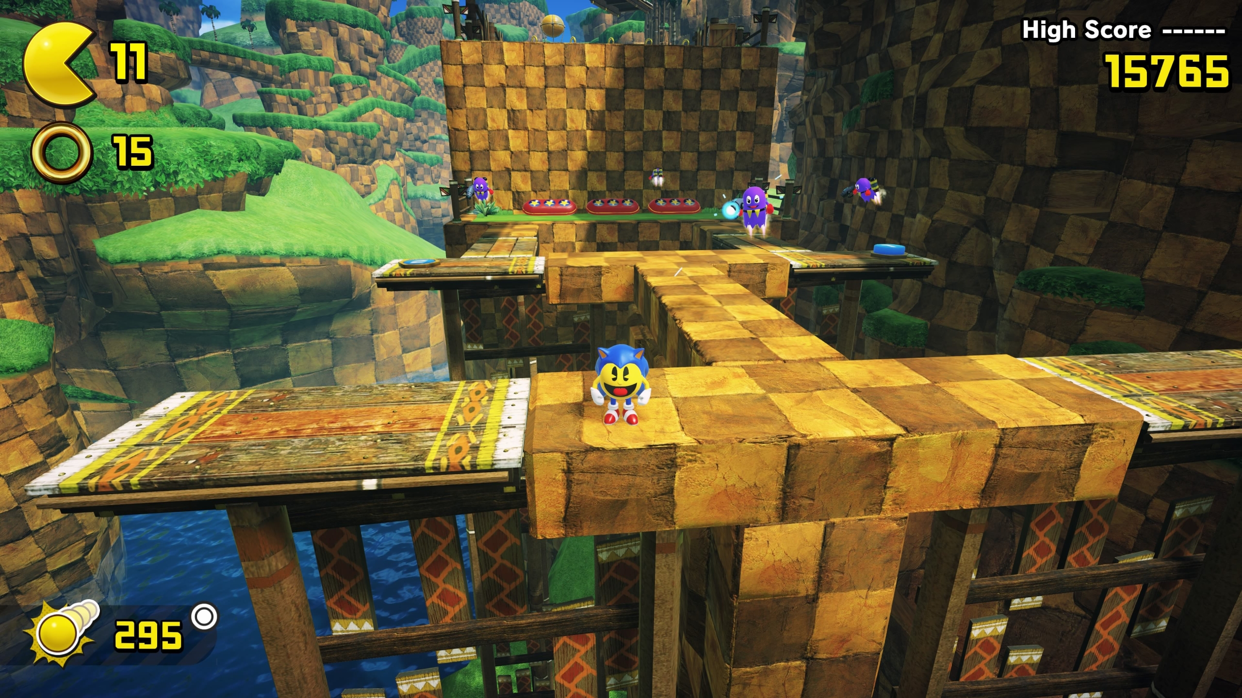 Paketti pitää sisällään muutaman hienosti Sonic-grafiikalla ja ääniefekteillä toteutetun pelikentän ja lisäksi Pac-Man saa asuvarastoonsa niiden muutaman vaihtoehtoisen snapback-lätsänsä rinnalle hauskansiniset Sonicin vermeet. Sonic (vai Sonic Team?) lahjoo pelaajaa myös Sonic-teemaisilla figuuripatsailla, joita voi laittaa jalustalle Pac-Landissa muiden hahmojen ja objektien tapaan.