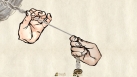Ensimmäinen ajatukseni Pentimentin grafiikasta toi mieleen aikoinaan, vielä 90-luvullakin Finnairin lennoilla (ja miksei muidenkin lentoyhtiöiden) myydyt Uniset Picture Making -vinyylitarrakirjat, joiden sisältämiin pahvitaustoihin sai lätkiä erilaisia vinyylisiä hahmo- ja objektitarroja ja käyttää sitä kuuluisaa lapsen mielikuvitustaan odottaessaan kärsimättömänä loputtoman lennon päättymistä. Eritoten Unisetin viikinkisetti tuli Pentimentistä mieleen, vaikka eri ajanjaksoille sijoittuvatkin. Jonkun mielestä tällainen vertaus on kenties halventava pelin artisteja kohtaan, mutta sanon sen vain hyväeleisesti, enkä kerta kaikkiaan päässyt siitä mielikuvasta enää eroon, kun se kerran päähän iski.