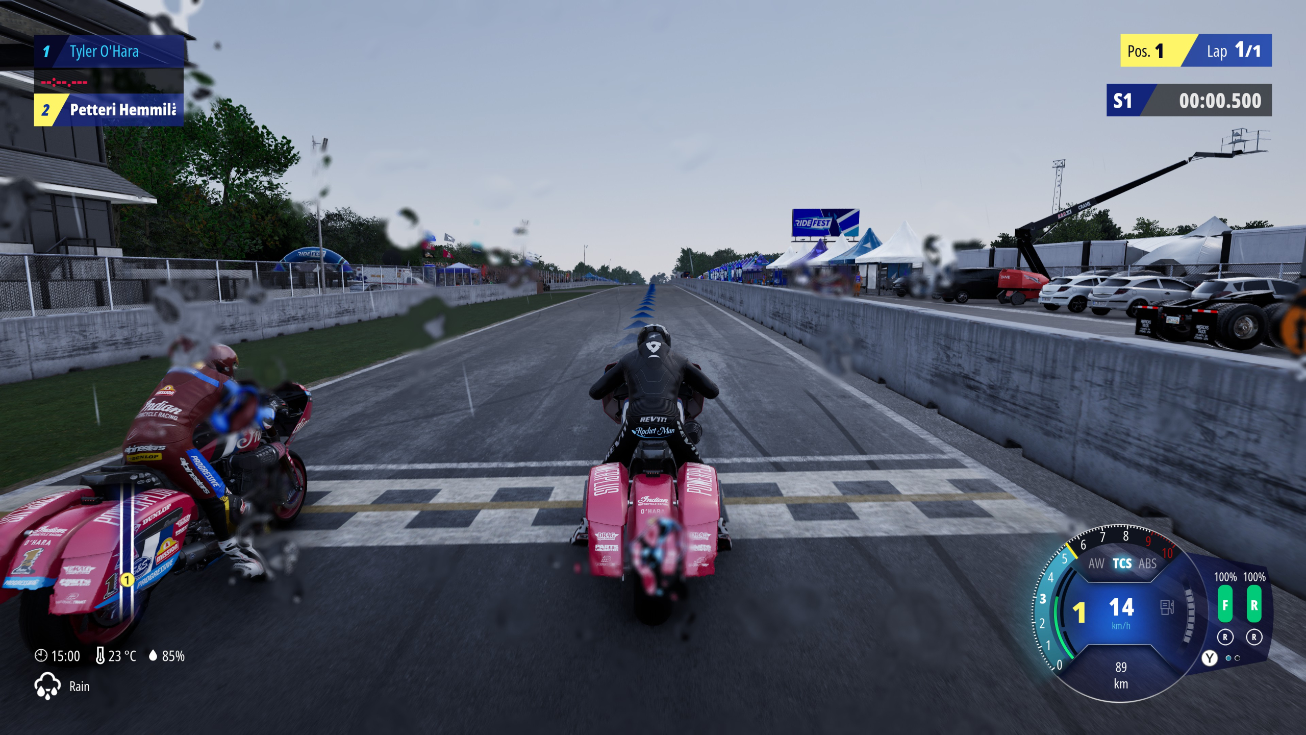 Siirryttäessä valikoista radoilla, tuntuu Ride 6 enimmäkseen hyvältä. Pidättäydyn aitona amatöörinä sanomasta mitään painavaa pro-moodista (muuta kuin, että se tuntui pahuksen vaikealta), mutta arcade-tila tarjoaa kaltaiselleni sunnuntaikuskille sopivan kompromissin helppouden ja realisin väliltä. Ajomalli ei ole kovin rankaiseva, mutta kuitenkin uskottava – ilmeisimpinä kompromisseina voimakas luistonesto ja lukkiutumattomat jarrut, jotka venyttävät jarrutusmatkaa etenkin sadesäällä. Uskalias kaasuttelu kaarteissa tai nurmikolla johtaa yhä asfaltti-ihottumaan, mutta tyypillisin virhe on vetää ajolinjat pitkiksi. Tuntuma iskostuu kuitenkin ennen pitkää selkärankaan ja normaaleilla reflekseillä varusteltu selviää halutessaan palkintopallille – jos ei muuten, niin valmiita ajolinjoja seuraamalla.