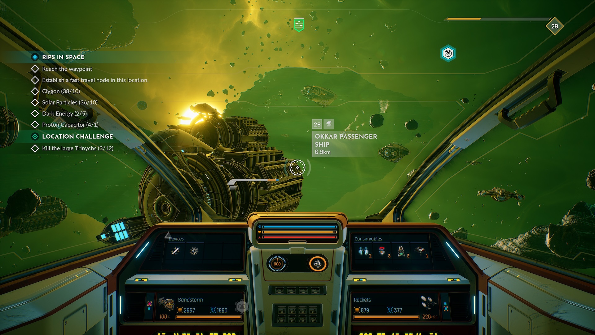 Lisäosa tuo mukanaan myös uusia tavoitteita. Kokemustasokatto pysyy yhä peruspelin kolmessakympissä, mikä saattaa olla kovimmille grindaajille hienoinen pettymys, mutta uudet Ascendant-tason varusteet ovat erinomainen houkutin ylimääräiselle seikkailulle. Oman pienen tavoitteensa tuo myös lisäosan uusi alus, Wraith. Ihmiskäyttöön modattu Okkar-hävittäjä tuntuu alkuun rahtusen raskaalta, mutta osaa toisaalta muuttua joko puoliksi tai kokonaan näkymättömäksi sekä teleportata pieniä matkoja. Wraithin lentäminen vaatii perusalusta parempaa erikoisominaisuuksien tuntemusta, mikä tuntui juuri sopivalta vaihtelulta Everspace 2:n mehevään mutta pidemmän päälle toisteiseen taisteluun. Taistelulentäjän kykyjään pääsee mittaamaan uusissa optionaalisissa “Ancient Rift”-aika-avaruusrepeämissä, jotka ovat kuin hardcore-versio peruspelin korkean riskin vyöhykkeistä. Riftien vaikeustasoa ja palkkioita voi säädellä vapaasti, mutta skaala on kiperä: “hulluustaso” (kuten peli sen ilmaisee) venyy erittäin vaikeasta mahdottomaan, eikä rifteihin ole mitään asiaa alileveloituna. Tasokattoa kannattaa kurotella muutenkin jo ennen lisäosaa, sillä vaikka perustaistelut ovat suhteellisen helppoja, on pelillä yhäkin aika paha tapa tiputella melkoisia vaikeustasopommeja loppuvastustajien muodossa. Pahimmista esteistä ei selviä välttämättä edes vaikeustasoa tiputtamalla.