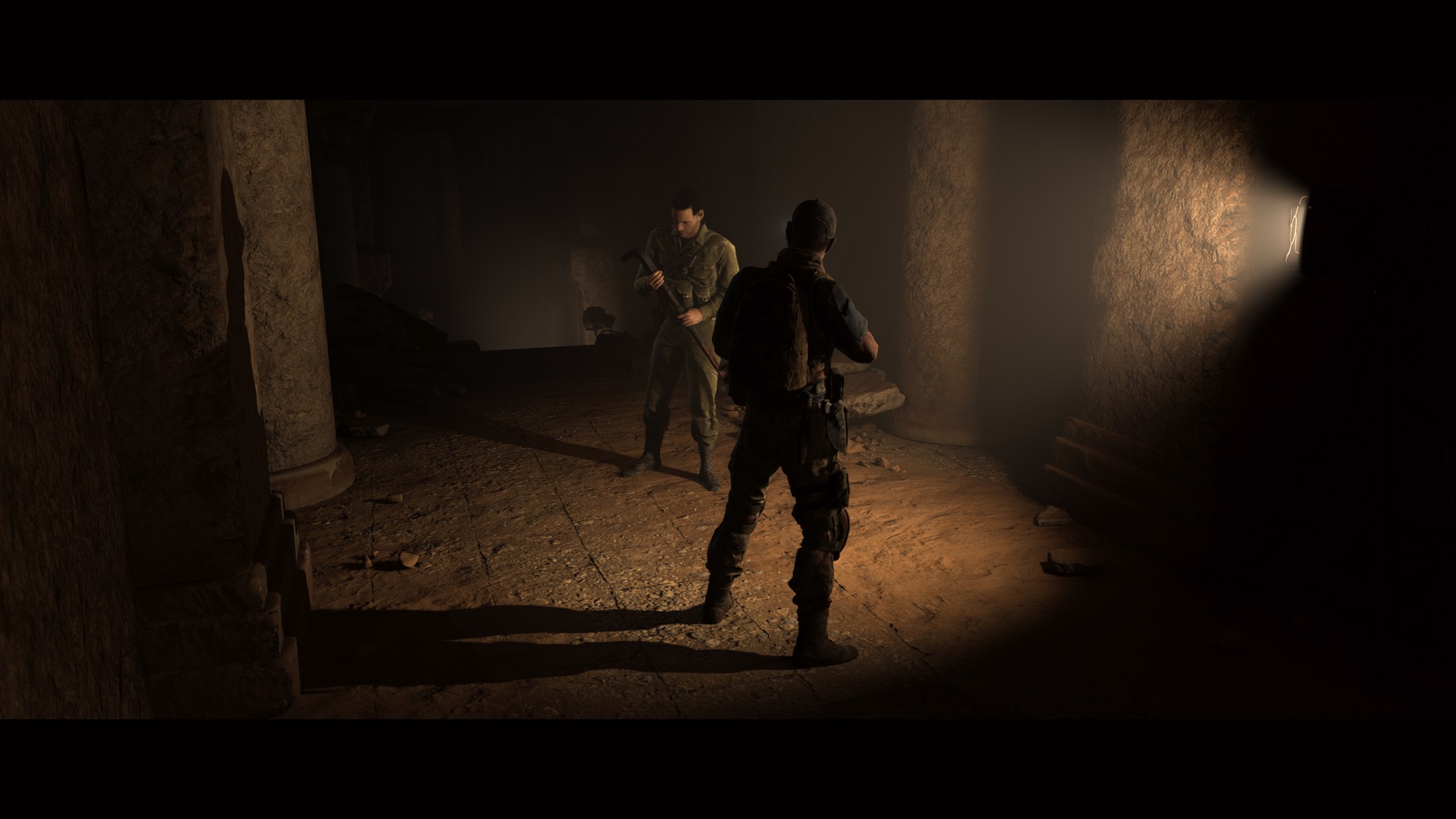 The Dark Pictures Anthologyn ehdottomia vahvuuksia on ollut pelien verrattain lyhyt kesto ja niin myös House of Ashesin. Tarinan voi vääntää halutessaan läpi yhdessä illassa, mikä madaltaa kynnystä uuteen läpäisyyn vähän eri valinnoilla. Huomasin kulkevani ensimmäisellä kerralla enemmän niitä polkuja, joita kuvittelin suunnittelijoiden tarkoittaneen viralliseksi kaanoniksi, enkä niinkään niitä, joihin oikeasti uskoin. Toisella pelikerralla menin enemmän oman mieleni mukaan, ja kolmas kerta vierähti kokeillessa, miten peli suhtautui yksinomaan huonoihin valintoihin sekä epäonnistuneisiin toimintakohtauksiin. Koska tarinassa ei voi käytännössä epäonnistua, ei moninpeliseuraksikaan tarvita pelaamisen ammattilaista, vaan kuka tahansa kevyehköstä kauhuelokuvasta innostuva voi tarttua ohjaimeen. Jos kaipaa onnistumisen kokemuksia, saa pelistä myös halutessaan aika helpon: House of Ashes herättelee pelaajaa ylimääräisellä notifikaatiolla aina kun kerronta muuttuu interaktiiviseksi, ja helpoin vaikeustaso antaa juuri riittävästi aikaa luntata ohjaimen nappuloita vaikka kesken toimintakohtauksen.