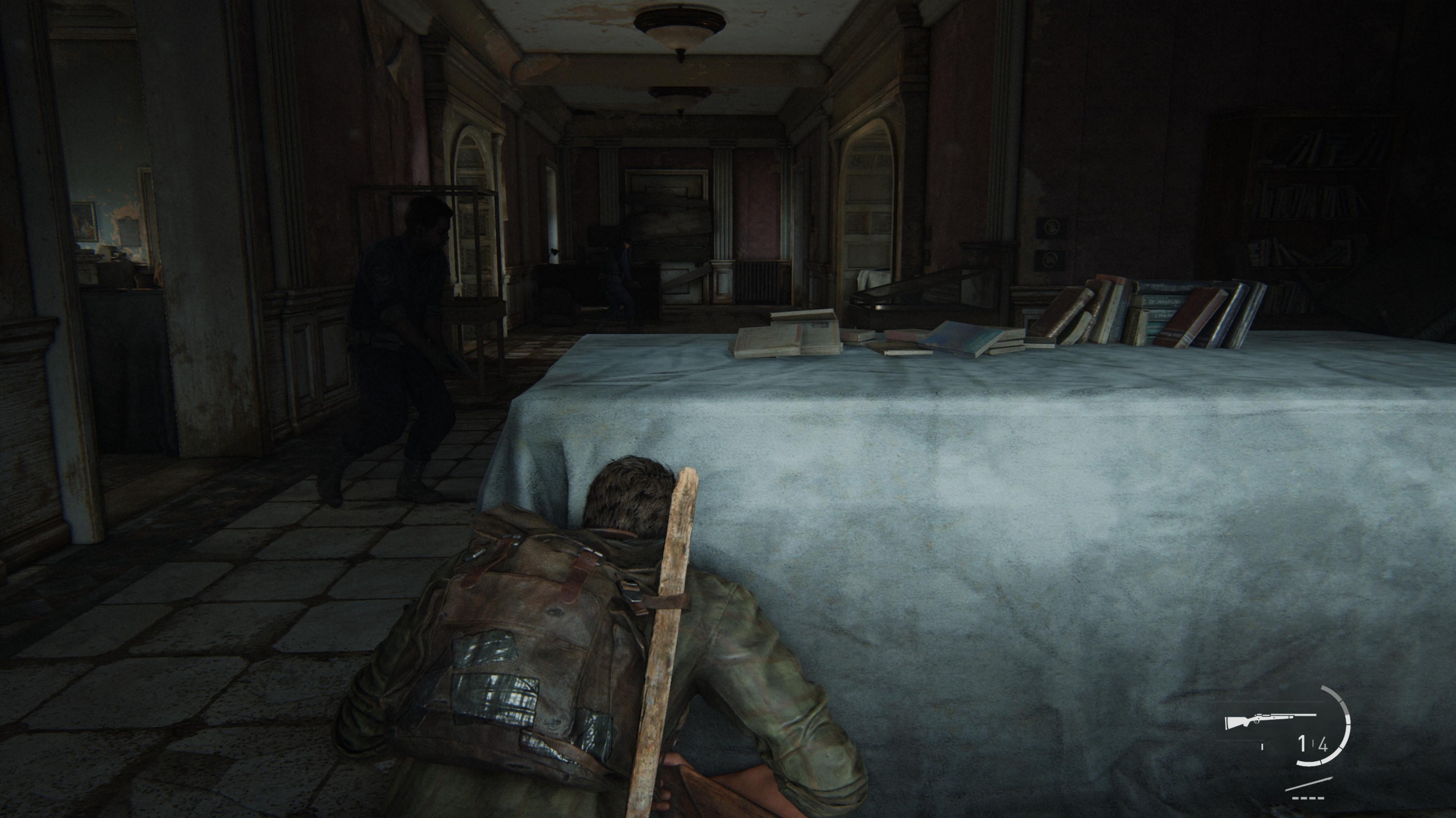Pienistä pelattavuutta koskevista ehostuksista voisi mainita vielä PS5-ohjaimen haptisen palautteen sekä parannellun tekoälyn. Mainospuheiden perusteella Part I:n viholliset kiertäisivät pelaajan selustaan entistäkin aggressiivisemmin ja Ellie pysyttelisi uskottavammin piilossa, mutta käytännön merkitys jäi rehellisesti sanoen vähäiseksi. Aika lienee kullannut muistoni, sillä muistelen vihollistekoälyn savustaneen minut tehokkaasti liikkeelle jo PS3-versiossa, eikä Ellie harhaillut sen häiritsevämmin nyt kuin silloinkaan. Kehitystä on varmasti tapahtunut, mutta onko sellaista kehitystä, johon keskimääräinen pelaaja kiinnittäisi huomiota lukematta asiaa ensin Internetistä? Ehkä ei. Ohjaimen tuntopalautetta vaivaa vähän sama vika: vaihtelevat liipaisinjäykkyydet, sateen ropina sekä kämmenissä värisevä dialogi ovat kyllä tosi kivoja lisäyksiä, mutta niiden olemassaolon myöskin unohtaa pelin tuoksinassa alta aikayksikön. En silti valita – ihan kiva, että edes joku yrittää hyödyntää DualSense 5:n ominaisuuksia täysipainoisesti.