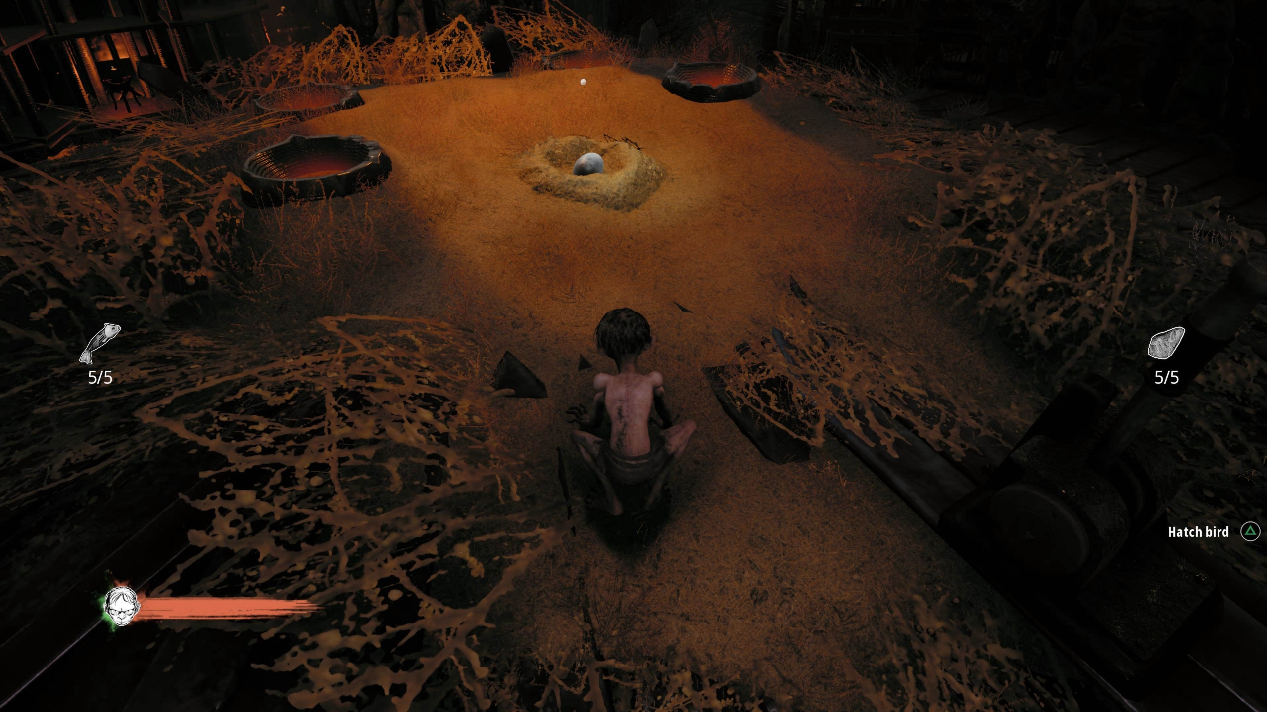 Gollum-pelin kontrollit sinänsä ovat melko hyvin toteutetut – osa-alueena kenties pelin parasta antia. Klonkun liikuttelu ja juoksuttaminen yleisellä tasolla on jopa suhteellisen sulavaa, jopa ne kiipeilykontrollitkin, vaikka hetkittäin pelikamera joissain kiipeilytilanteissa kenkkuileekin ja muutamaan otteeseen voi mennä sormi suuhun, mistä kohtaa pimeässä kaivoksessa pitäisi seuraavaksi kavuta ylös, eivätkä kaikki hyppely- ja kiipeilykohtaukset ole aina pelaajaystävällisiäkään. Navigoimiseen auttaa Klonkun erikoisnäkö, jonka voi aktivoida L1-nappulaa painamalla. Kuva muuttuu mustavalkoiseksi, korostaen viholliset punaisella ja oikea navigointisuunta näkyy oransseina juovina. PS5-version osalta missattu tilaisuus on ehdottomasti se, että peliohjaimen haptisia liipaisimia ei ole hyödynnetty mitenkään. Värinä on jopa suorastaan mitään sanomatonta, kun se olisi voinut parhaimmillaan olla tunnelmallista ja tuntuvaa Klonkun tassuttelua. Haptista palautetta ei ole kuitenkaan osattu tai jaksettu hyödyntää.